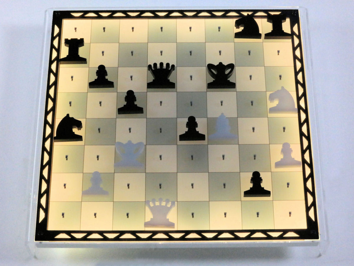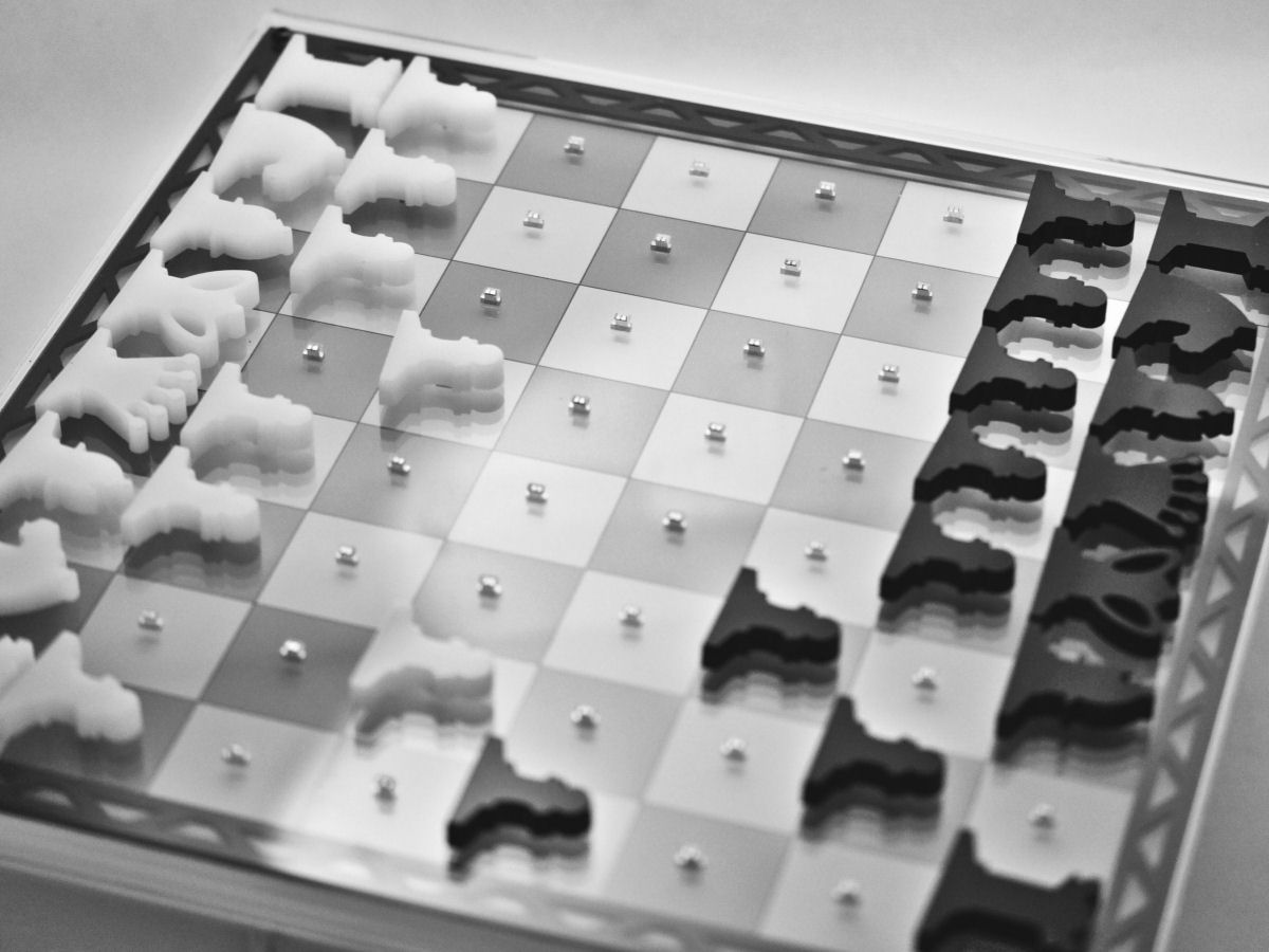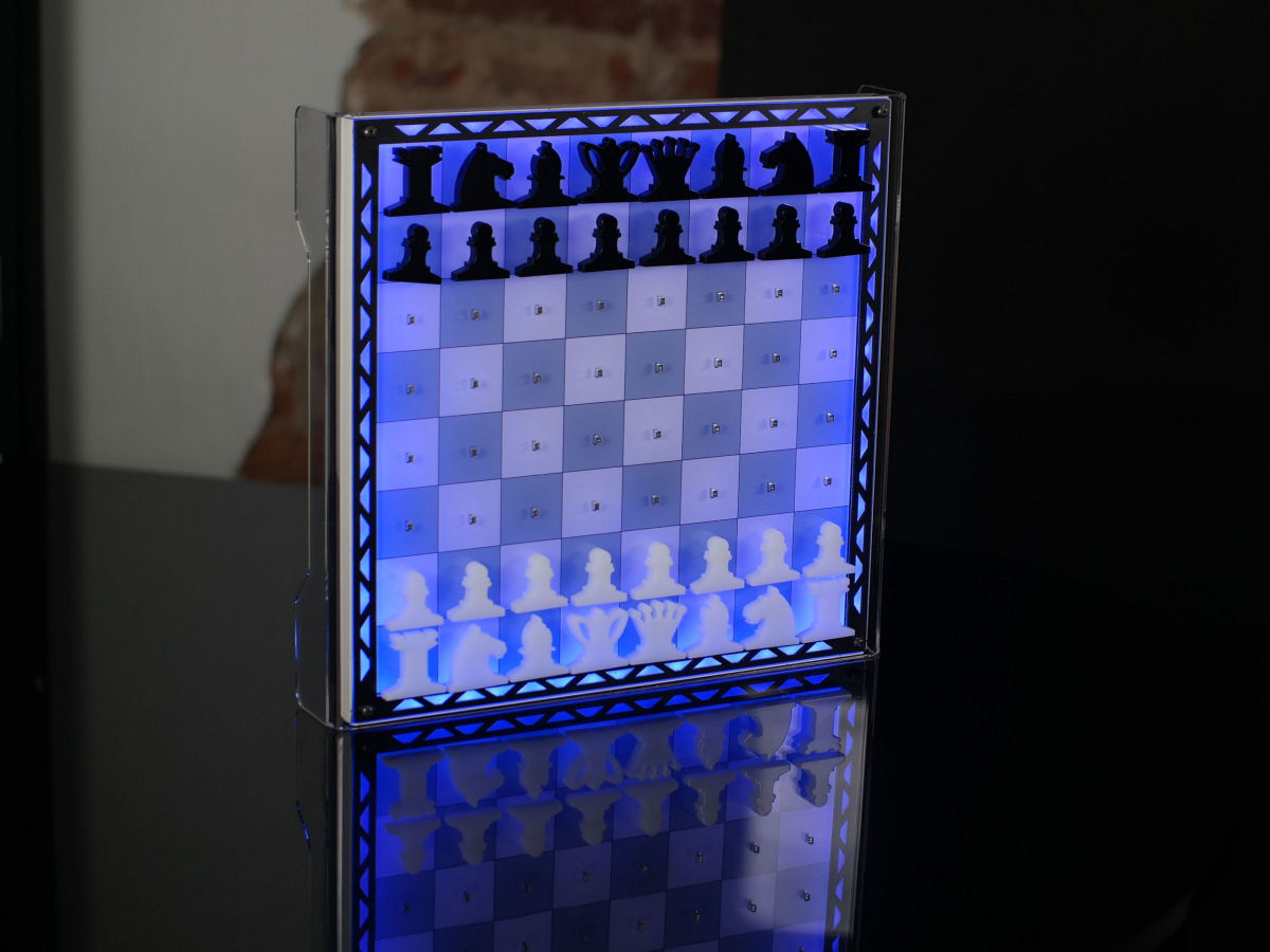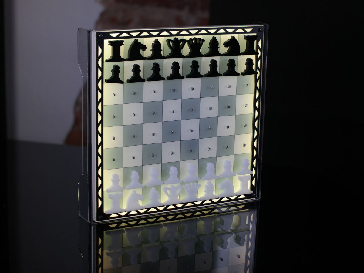 "ScaccoPiatto" nasce dalla richiesta specifica di un cliente che voleva una scacchiera diversa dal solito, possibilmente in plexiglass; l'intuizione progettuale nasce quindi dalla specificità di questo materiale: la trasparenza.. da qui si è sviluppato il concetto di creare una Lampada/Scacchiera da arredamento; il suo design è essenziale e curato nei dettagli, inoltre le pedine, grazie ad un ingegnoso utilizzo di micro-magneti, magicamente vengono attratte dalla scacchiera anche se questa è in posizione verticale, sia su un tavolo che appesa al muro, così da avere una Lampada/Gioco per interminabili partite!